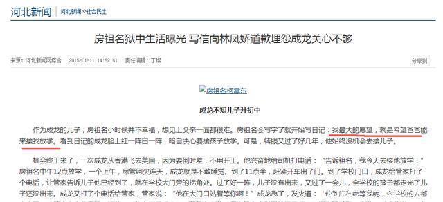 可即便如此,他对房祖名的教育也不上心。房祖名从小就很少见父亲,别的孩子能和家人团聚,他回家只能看到保姆和妈妈林凤娇。 他小时候在日记里写道,最大的愿望是爸爸能来接自己上学,可成龙却从来没满足过这个简单的愿望。