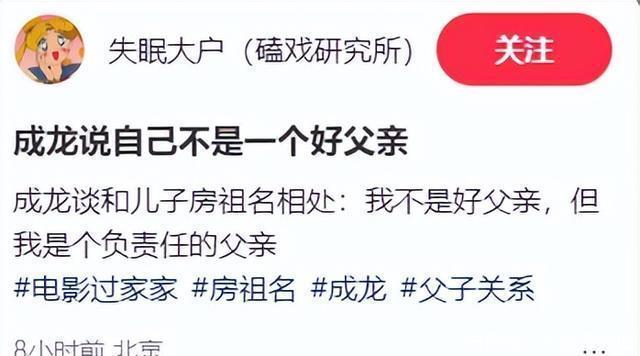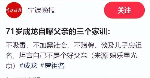 对房祖名:忽视与苛责,亲手毁了父子情 “私生女事件”曝光后,成龙被骂了很久。但他始终没让小龙女认祖归宗,在他心里,只有房祖名是正统儿子。
